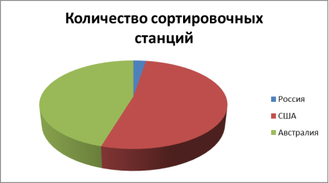 Наглядная демонстрация количества сортировочных станций среди ведущих стран мира