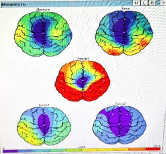 В последние десятилетия появились новые технологии исследования головного мозга: позитронно-эмиссионная томография, функциональная магнитно-резонансная томография, количественная электроэнцефалография и метод когнитивных вызванных потенциалов [5]. Для объективной оценки динамики функционального состояния головного мозга в процессе лечения адекватным и высокоинформативным является анализ параметров когнитивных вызванных потенциалов. На рисунке 6 представлены результаты исследования КВП пациента c болезнью Вильсона — Коновалова.